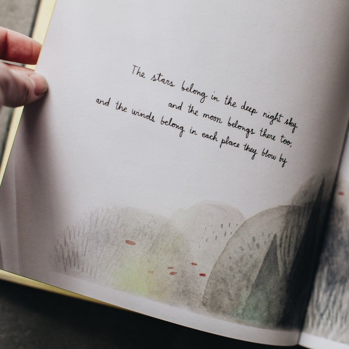 "The stars belong in the deep night sky, and the moon belongs there too, and the winds belong in each place they blow by, and I belong here with you."