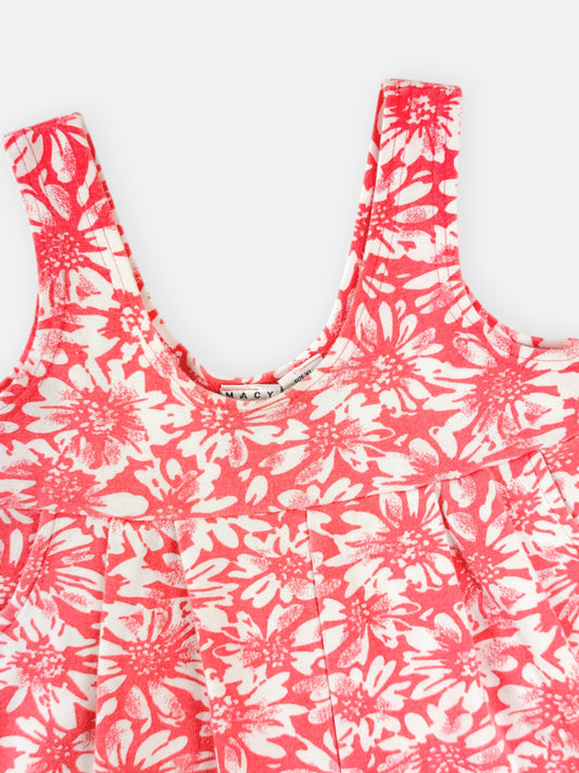 VINTAGE CORAL FLORAL ROMPER - 2T